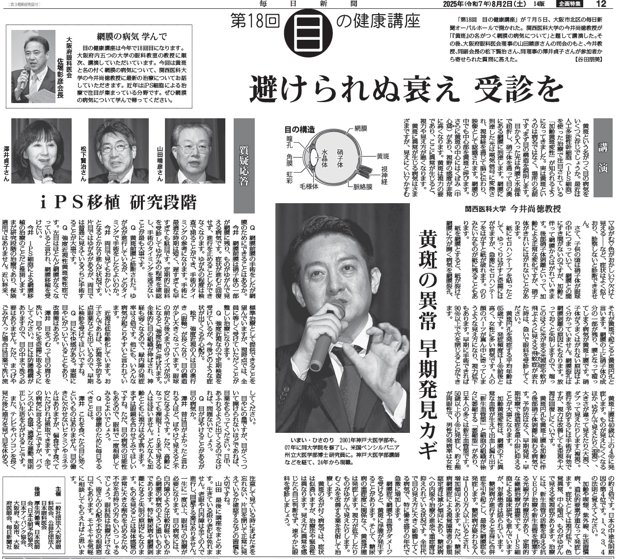 | 2025/08/2 | 『黄斑』の名がつく網膜の病気について | 毎日新聞 |